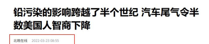 北晚在线,2022-03-23,《铅污染的影响跨越了半个世纪 汽车尾气令半数美国人智商下降》