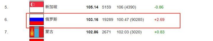 反观“战斗民族”俄罗斯却稳居前列,排在第六位。