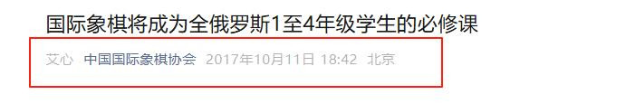 中国国际象棋协会,2017-10-11,《国际象棋将成为全俄罗斯1至4年级学生的必修课》