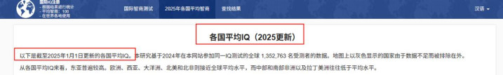 世界IQ注册,2025-01-01,《各国平均IQ(2025更新)》
