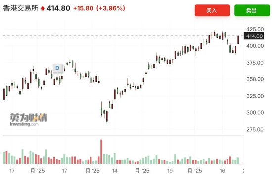 一年以来,港交所的股价也大涨近60%。没错,港交所本身就是一家上市公司。