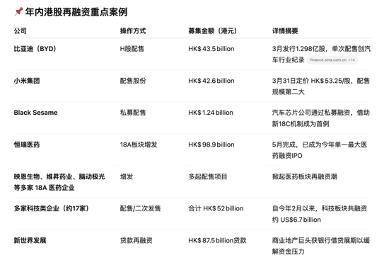 当前,港股再融资和IPO一样火爆,这也得益于改革。2025年前5月,港股累计再融资规模达2033亿港元,超过同期IPO募资总额两倍,仅第一季度就完成约86笔配售,总额1109 亿港元,同比增长超1300%。