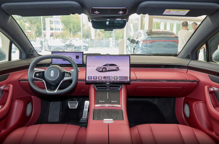 2026款智界S7在内饰方面,跟外观一样,延续了老款车型的大体风格,提供多种颜色搭配可以选择,中控台有着不错的层次感,方向盘采用椭圆形设计,一些细节还增加了拉丝面板,整体设计,符合这两年的趋势,氛围感也有着不错的表现。